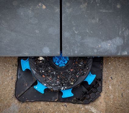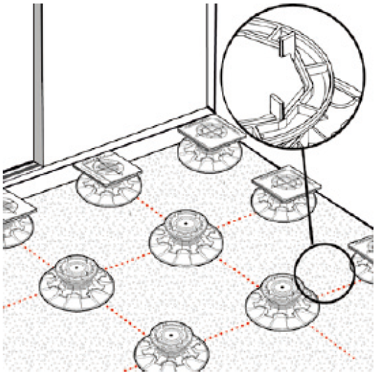- À faire : disposer un plot à chaque angle de dalle ; selon format/charge, ajouter un appui central (formats grands). Respecter l’entraxe conseillé par le fabricant du dallage.